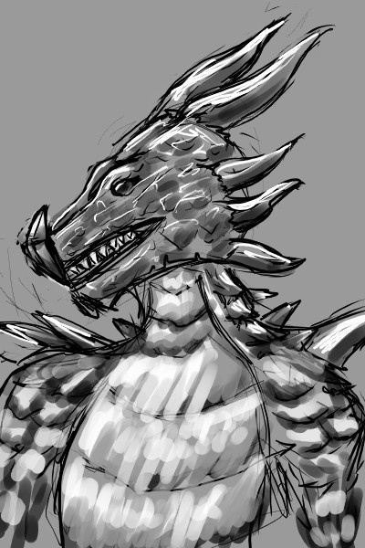 I used two or three different brushes while doing this one, and painted with whatever shades of the greyscale spectrum I wanted to use.