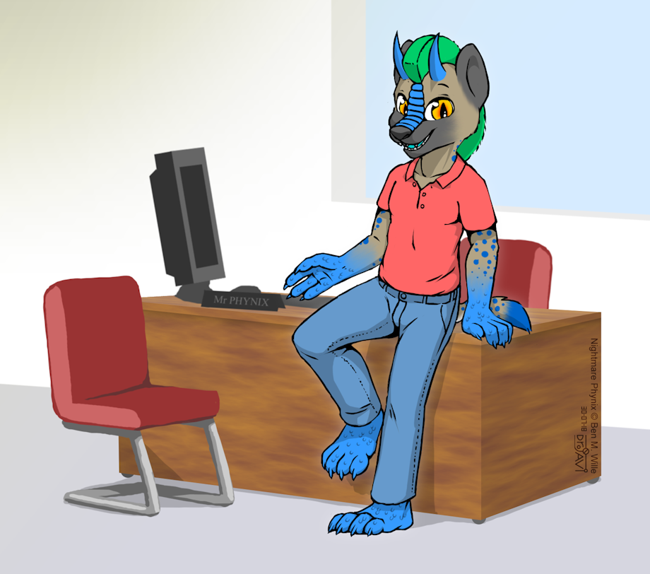 . His fursona being all professional, working as counselor at the school of Esperanza.
