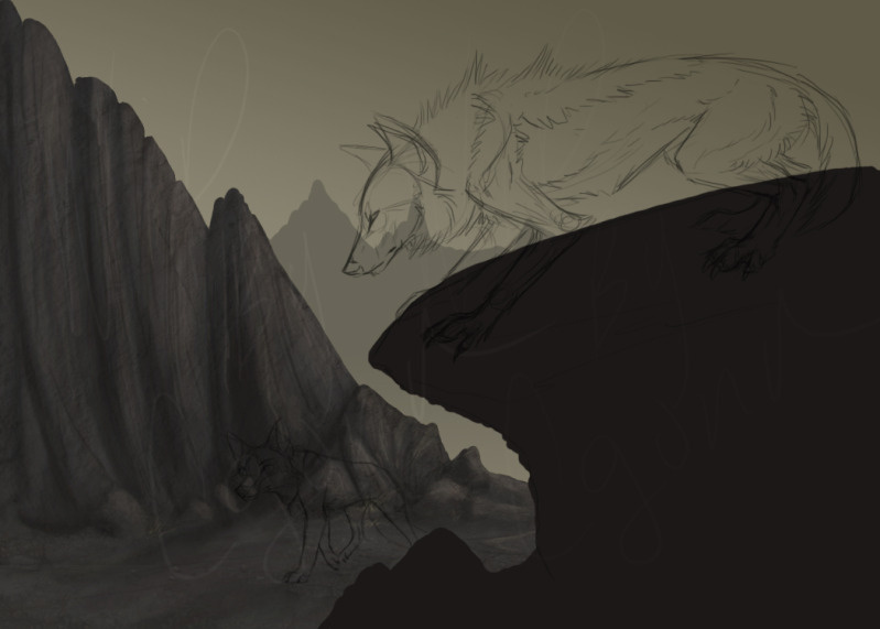 Work in progress! All over the picture! xD Sorry for all my watermarks, I happen to be paranoid and I'm paranoid of art theft. =P SO, watermarks. xD But I'm not sure anyone would want to steal this messy WIP, especially after photobucket had it's way with pixelizing the heck out of it. Anyways, it's Nero, ready to ambush The Fox and Zeke.