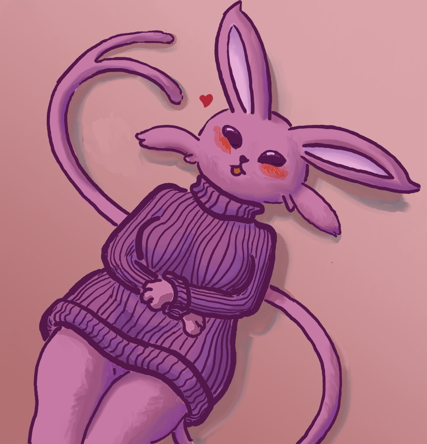 Something a bit different this time, an Espeon snuggling in a big warm sweater. I think I've spent more time trying out different backgrounds than I did drawing the character. In the end nothing worked so I've decided to keep it simple. I tried out different shading this time as well, which turned out quite nicely.