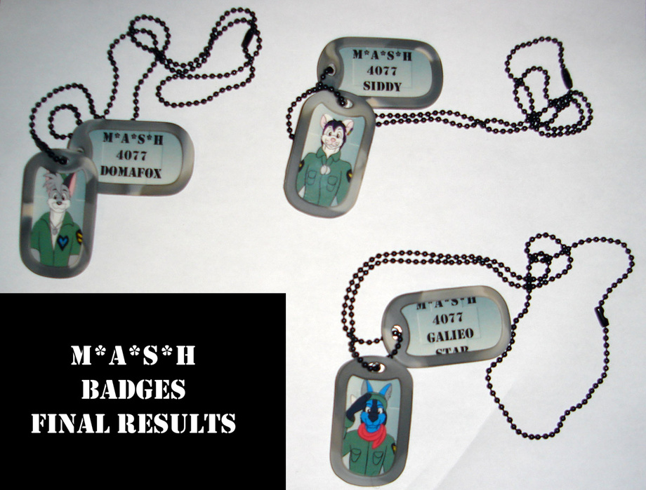 Domafox here to give everyone out there a chance to see what the M*A*S*H Dogtag badges are like for Real when you order them for $7 per set.