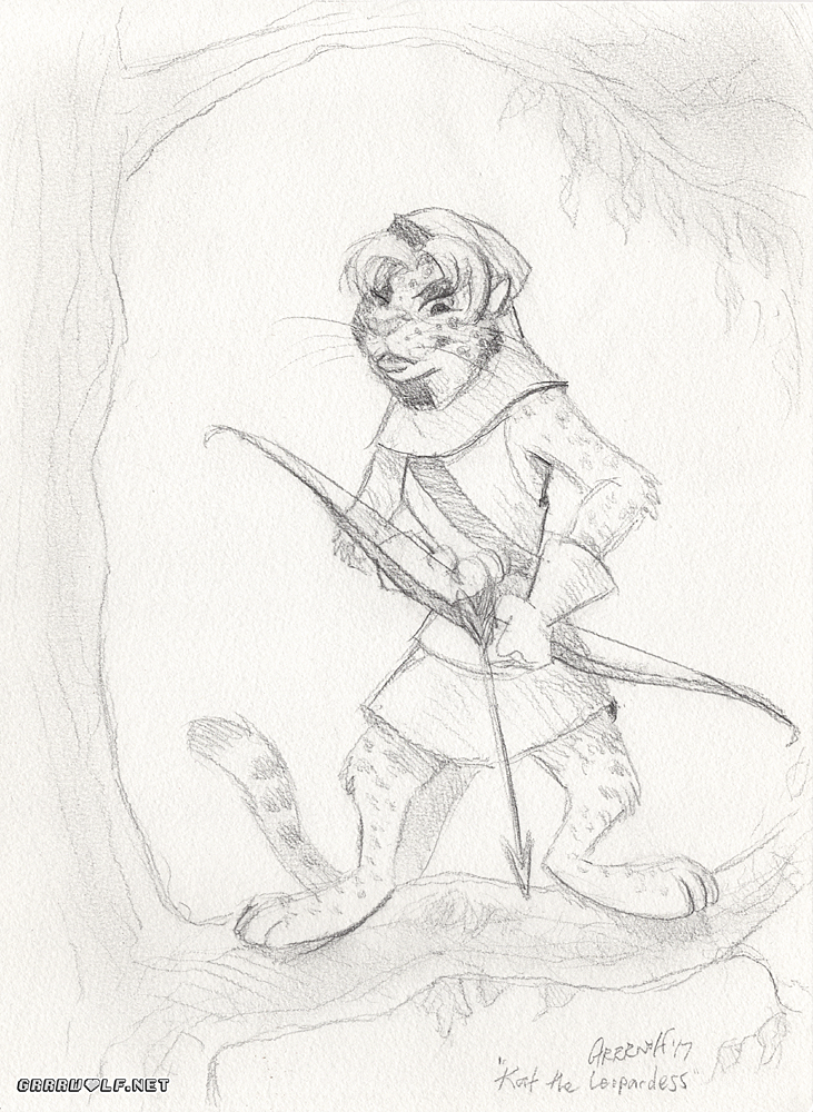 Last year I had an auction to help with costs for my mother’s funeral. It’s been almost one year since she passed, and I want to thank http://www.furaffinity.net/user/sagehendrix for her help. Here are two sketches I did as her character, Kat the Leopardess, as a rogue in Robin’s band of Merry Men. Thank you for everything ❤️