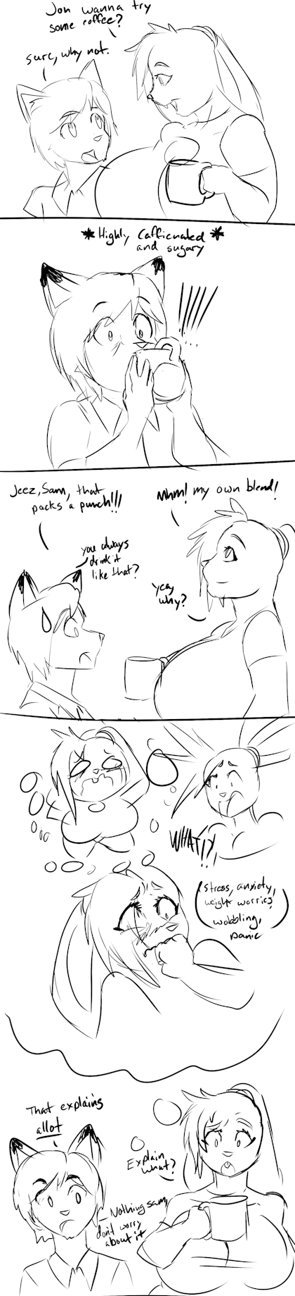 took up the bunny's offer of the caffeinated sugar bomb of a drink and found out exactly why the bunny was such a bundle of nerves 24/7, much to the rabbit's obliviousness...