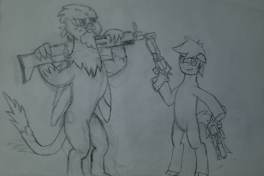 After my OC and Gabby were done clearing out some infected, they used the time to take a breather. While that took a lot of weight off their shoulders, the tactical gear still weighed them down. It's a wonder Gabby could still fly carrying so much military gear. So once they took it off, they could finally get a good stretch in. Yep. Even when holding guns. As you can tell, Gabby is great at handling the FN SCAR CQC even when not firing it. You can thank the pony holding two RSh-12s for showing her how to use it. Don't worry, the guns aren't loaded. For now. Even then, they're still rather heavy. This moment of leisure won't last forever as there are still more infected zones to liberate. So that means the tactical gear will have to be put back on again. |