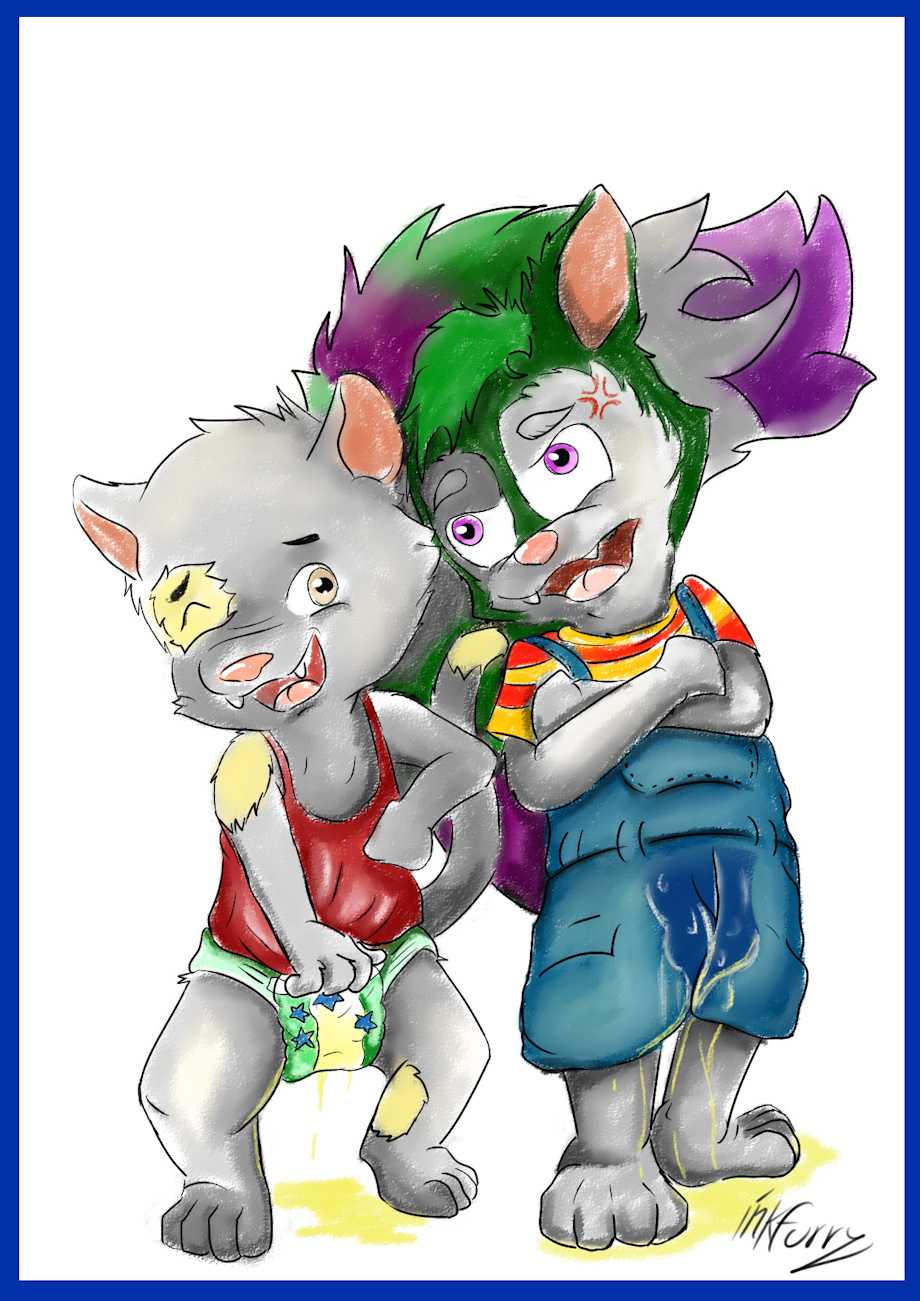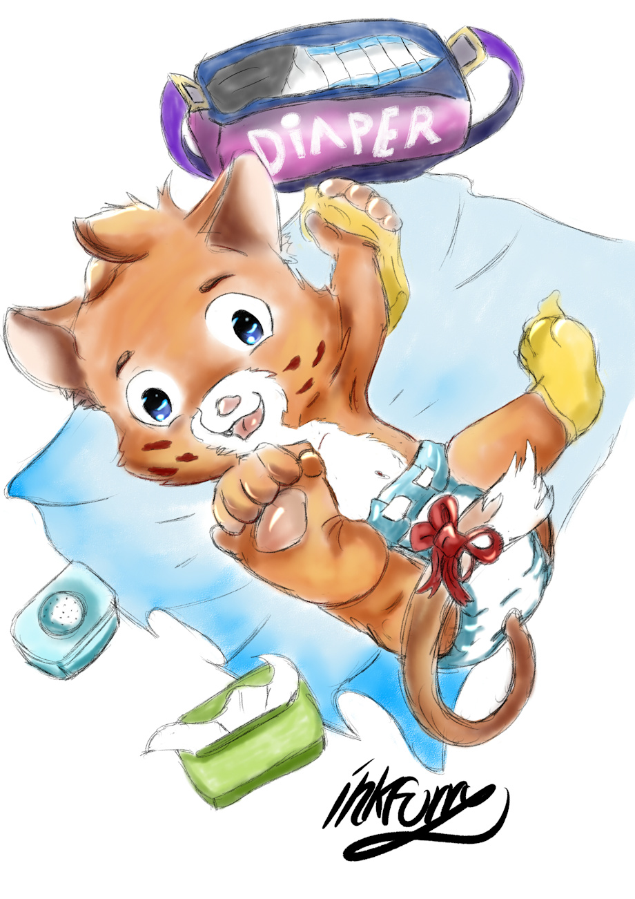 ypah diaper can not contain so much load and haora was leaked in his pants, could be somewhat embarrassing although the peer to the little cat is not getting it right with the same situation