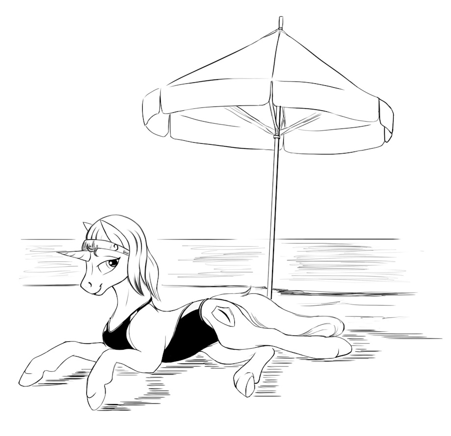 So about the swimsuit. When I've bought "Them's Fighting Herds" game https://store.steampowered.com/app/574980/ I noticed that some of Oleander's color schemes looked like one-peice swimsuite and it was fanny. I've gygabytes of pony art but I never saw anybody tried something like that on normal feral pony. So I wanted to fix this. Just for LOLs and more totally absurd but sexy clothes on pony. :)