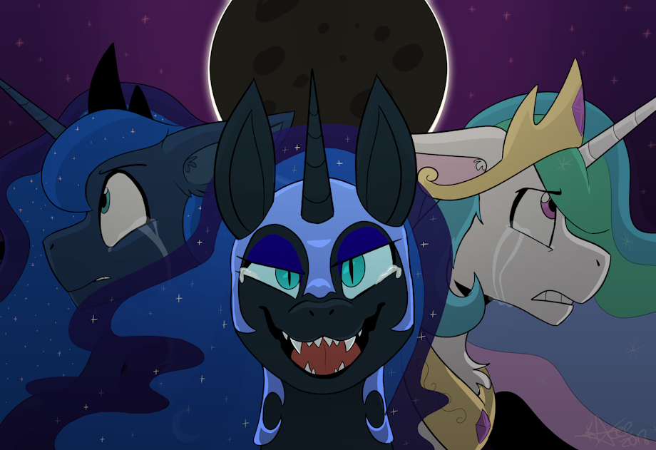 Oh yeah, the block system here is tits. It makes the search feature so much better than it is on other such sites. You know, Nightmare Moon kind of looks like she has been smoking with her big grin and watery eyes.