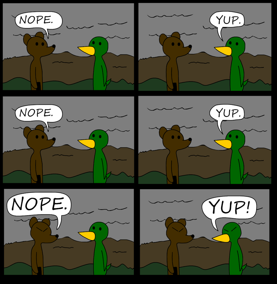 Haha with "swing both ways," the bear should have given him a left and right hook. Swinging his arms both ways haha. Punch!