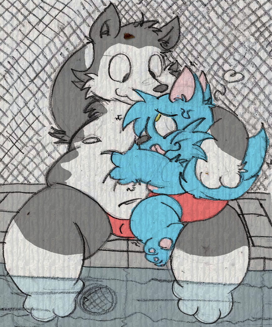 A shading practice and my half on Chubbvoulez's trade, showing his character and Yure near to a pool while Yure struggles to keep his actions age-appropriate. I can't help it, he is so fat.>///////<