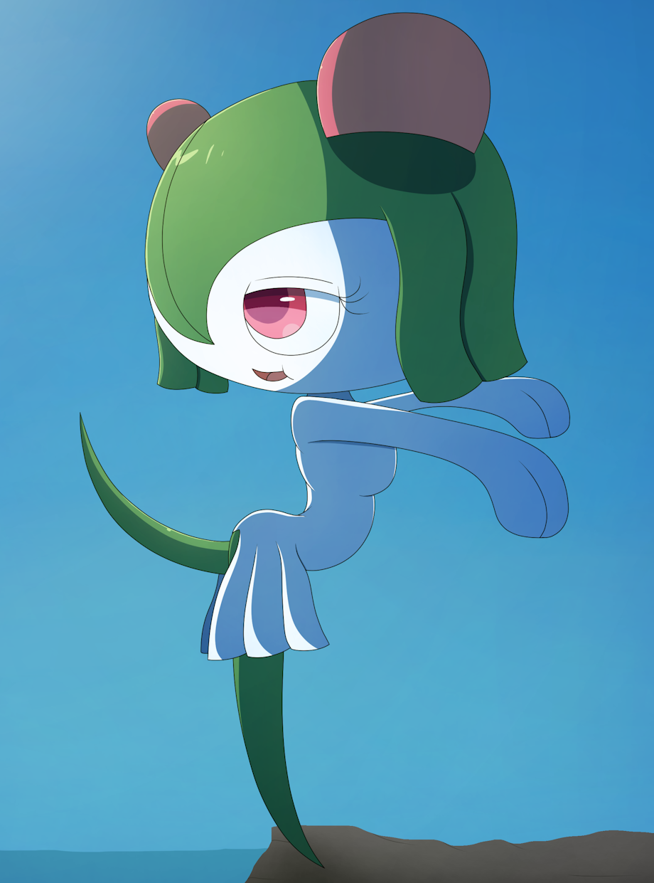 The commission was for the pose itself, so everything else was all me. While I've never done a pose anywhere close to this, it was fun trying to see how far I can take kirlia's body, to match the selected pose as close as possible. ^-^