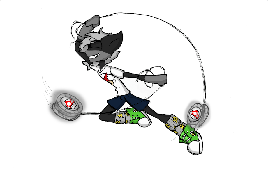 no, he doesnt. he and his brothers can summon their weapons at will. how did you know he wears brief