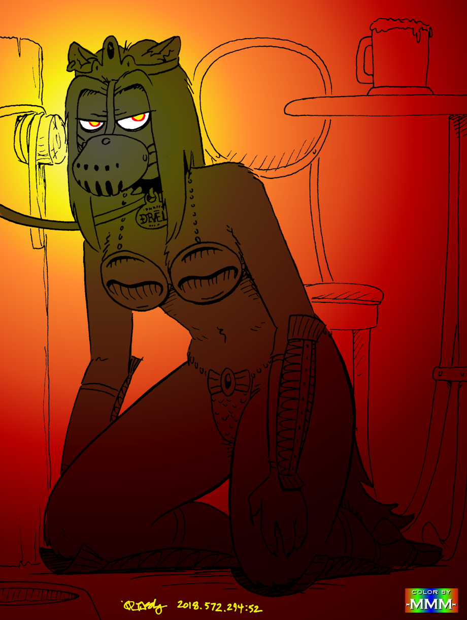 [quote]A colour version of the bemuzzled and becollared and betagged Wolf Queen; colour by marmelmm from original by Tegerio
