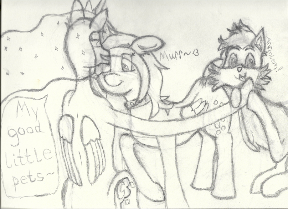 Derpy and Taily getting petsies for being good for the mistress