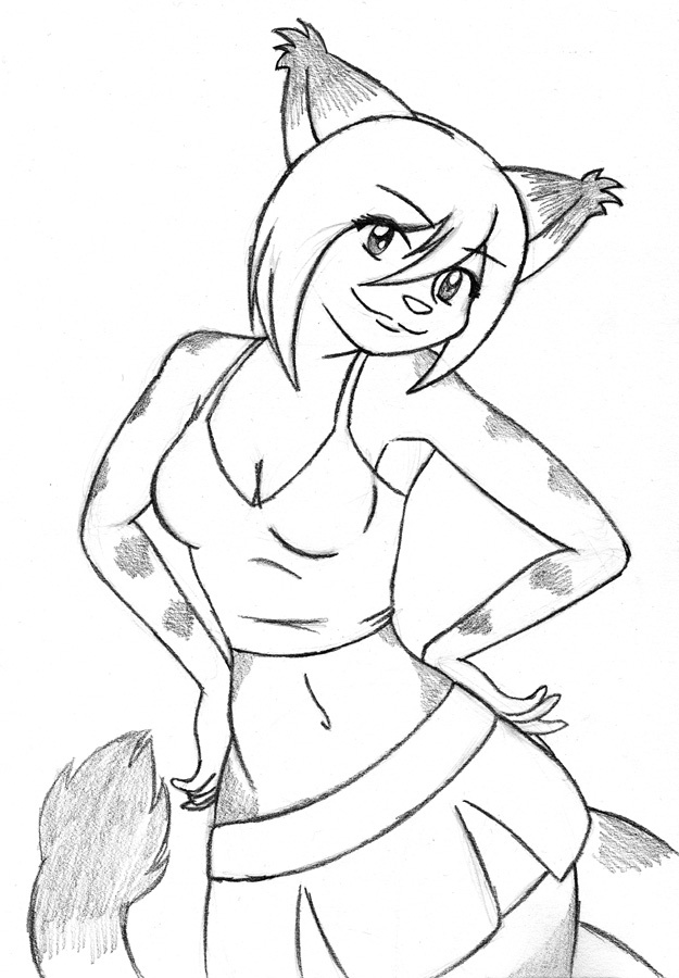 Mia is a cat with some Sass in her Ass. This was a Graphite piece I did while watching the Emperor's New Groove. Good movie. But someone recently told me I need to take a break from drawing naked chicks and focus more on clothing. I know a lot of you probably won't like that, but I took the advice to heart. I've already done a handful of drawings experimenting with clothing (including the art of removing it). Naughty or not, I really like how this one came out and I hope you all do too.