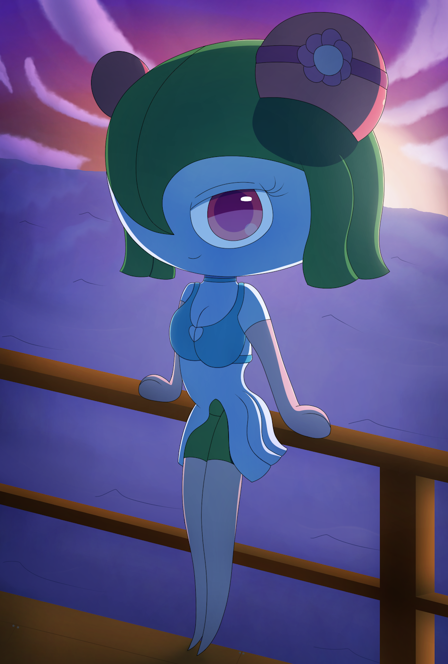 Summer may be ending, or maybe it has already ended, but the shine of a warm sunset day is still something pleasing to the eyes. This kirlia embraces that heat, as it barely shines pass her back.