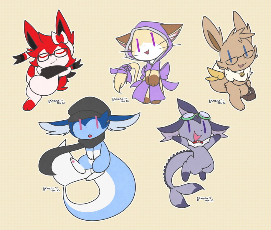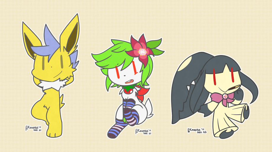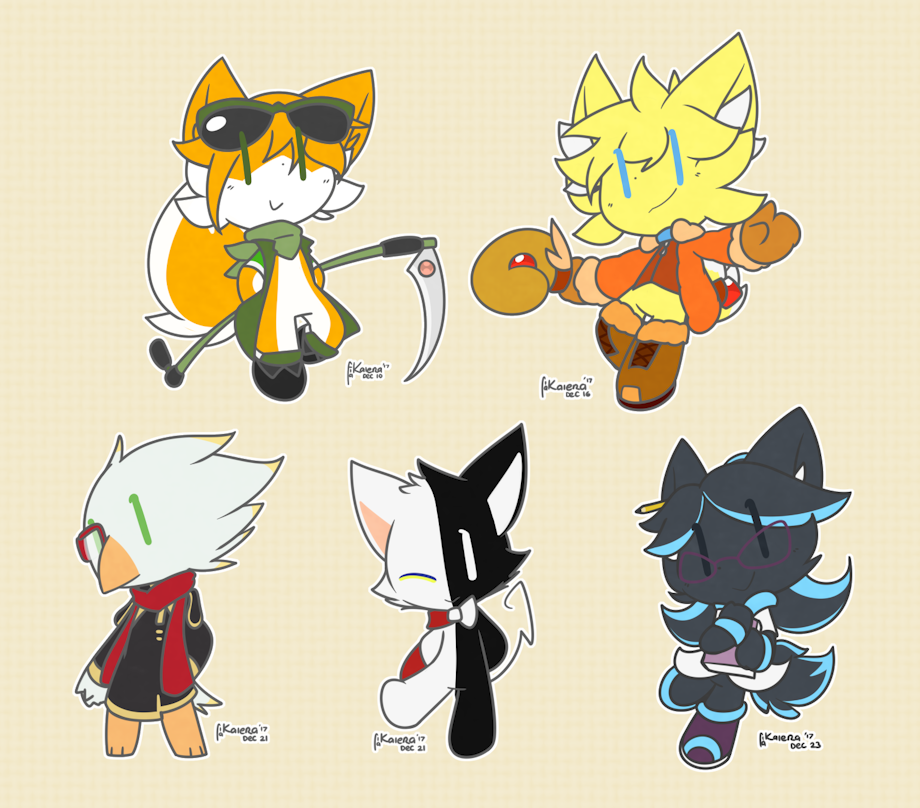 Entry #006, #029, #051, #053 and #095 for Iron Artist 2017 respectively. In order from left to right, from the top: Chino, Rio, Moon, Sekyno and Numbers. All of them either Typyl-viable or actual Typyl characters. Sekyno's design is not really viable, but I know much his sona is.