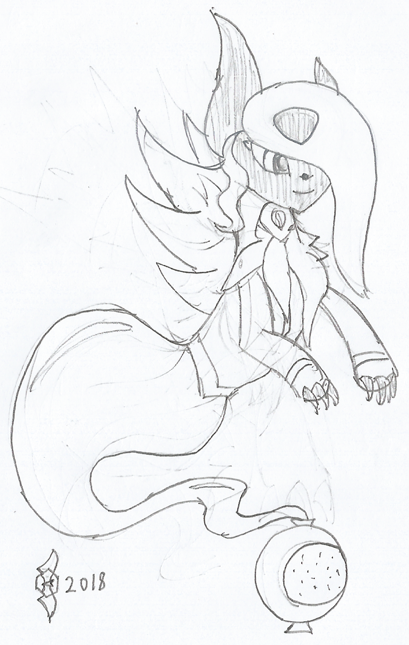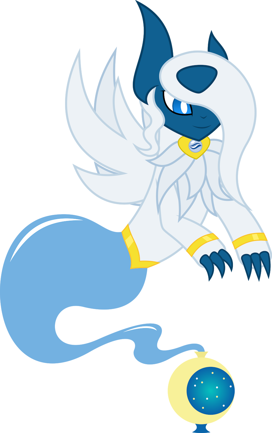 I was fascinated by this picture from DistortedPokeNerd and then sent a note to him announcing my intention to make a vector version of it. The reply said that he had in fact been interested by my own vectors a long time ago, so off I went doing this character, a geniefied Luna (Mega Absol).