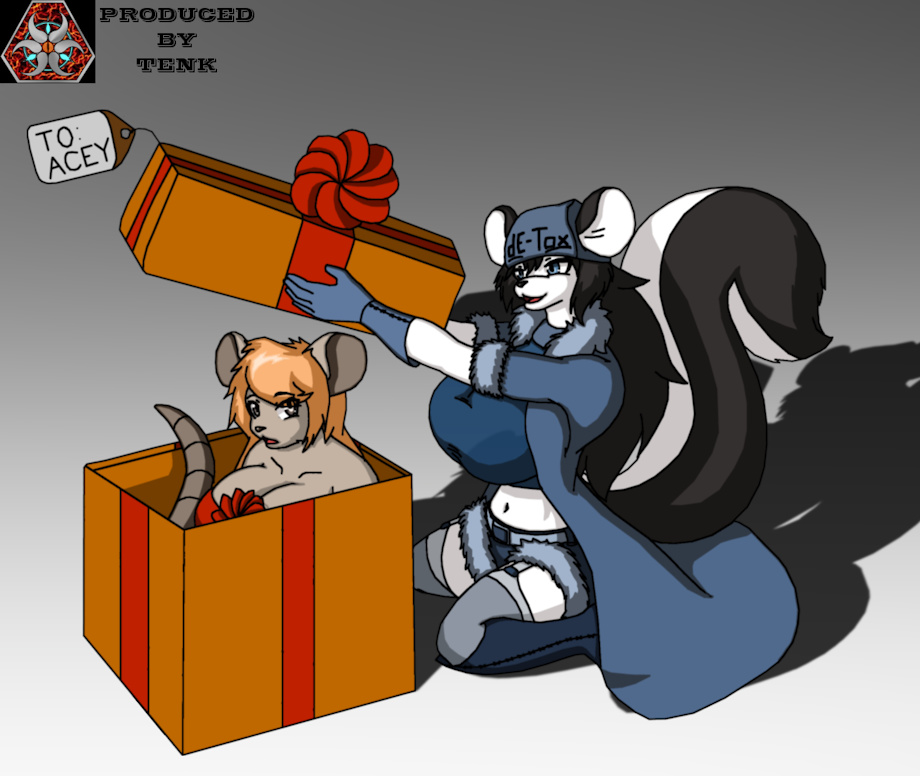 Featuring Tox boxing a gift wrapped Lina to Acey.