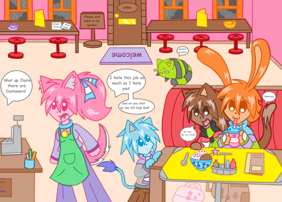 Another random picture with my two characters in the corner table there hehe i has icecream!