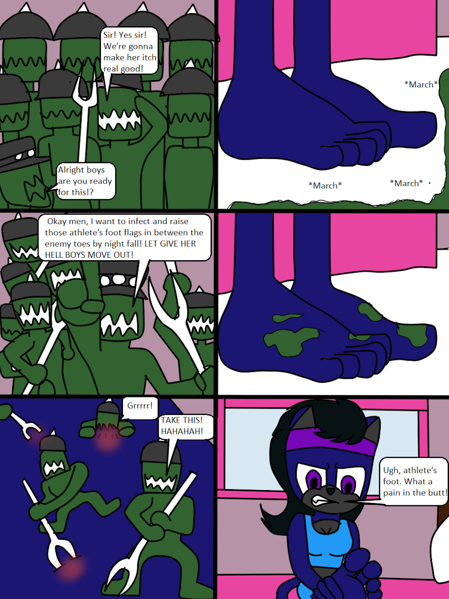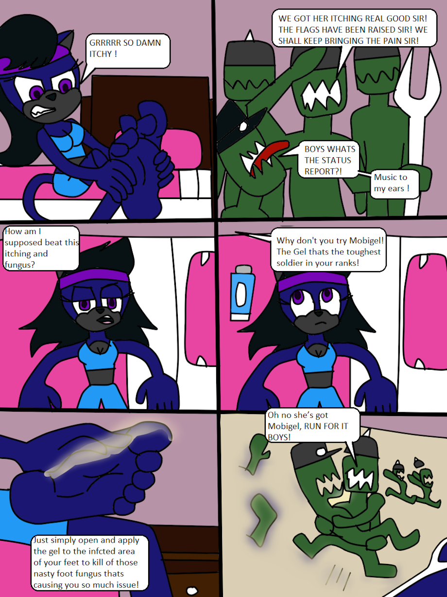 It's a 3-page comic of a Mobigel ad featuring my gal Nancy the Panther. Here, a bunch of fungi cause athlete's foot on her feet until she gets her hands on Mobigel anti-fungal gel.