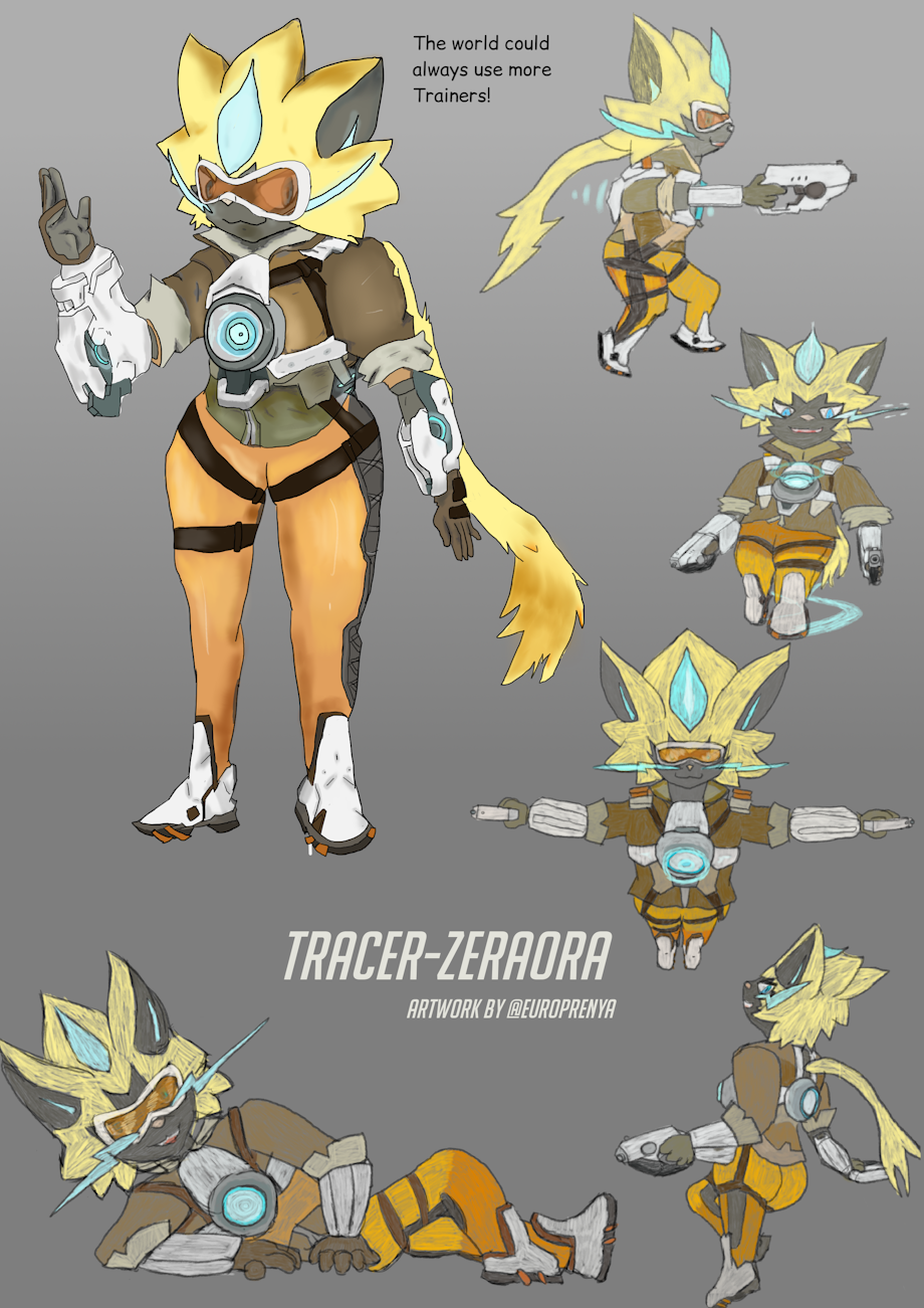 Collaboration of Tracer in Overwatch and Zeraora in Pokémon