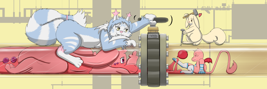 New banner for Twitter, featuring some OCs: Mewey, Mewth, Mewdra, and Velvetine.