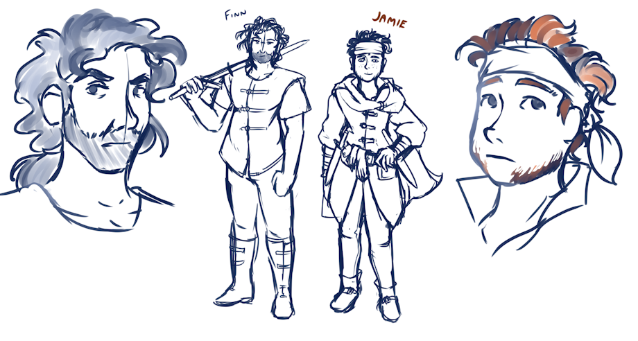 Initial designs for the main characters in the first story arc in Catcombs & Catgirls.