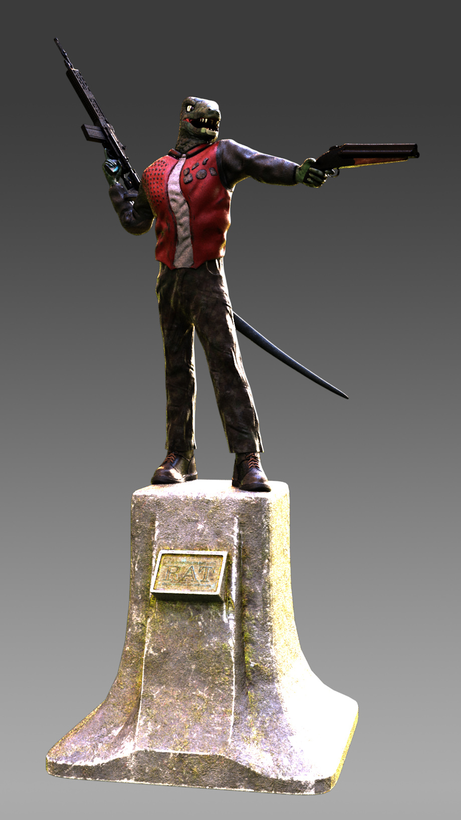 This is a final render for this guy. I've gotten a lot of feedback on him from other sources and there's a lot to improve on but for being one of my first character models, I think he turned out pretty splendid. I would like to clarify that everything in the scene is my work. I'll post bonus pictures on Patreon (as to not flood FA) but will not be exclusive. Feel free to look at them~