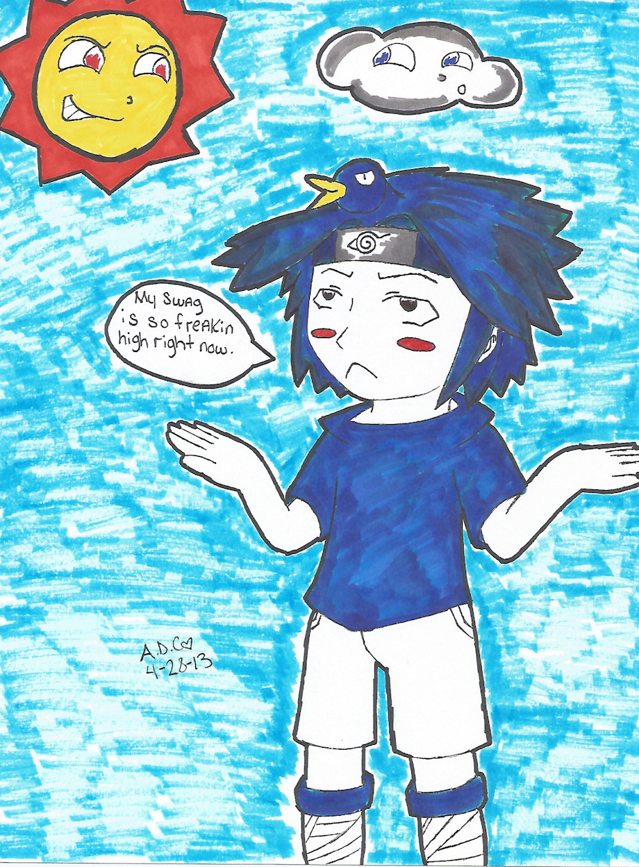 Long time ago there was a running gag on Instagram about Sasuke's hair being duck's feathers X'D