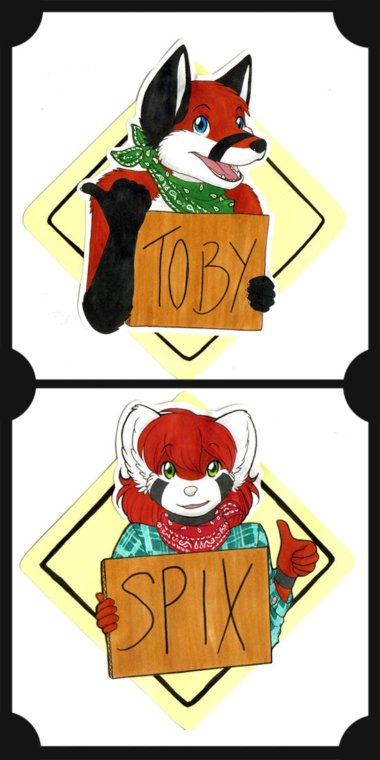 Here's our badges for MFF this year. I went with a hitchhiker theme to fit in with the con theme of Route 66. I'll be offering these at the con while I'm in Artist's Alley for $15 each.