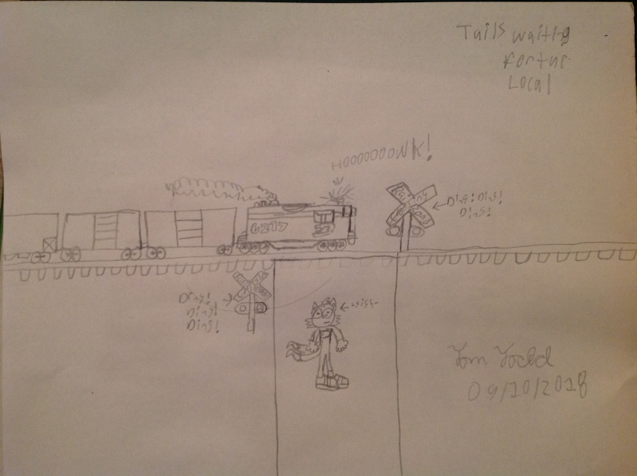 Just a pic of Tails waiting for the Burlington Northern local freight train to go by.
