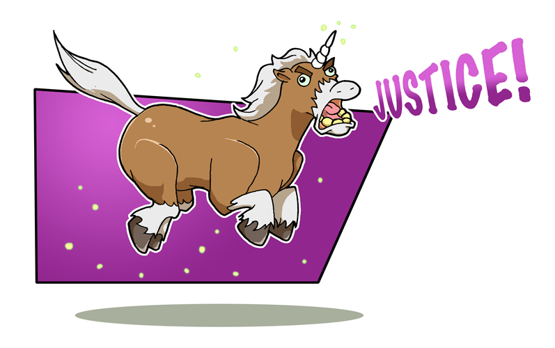 lol theres nothin to get. It's just a floating sparkly unicorn yelling justice.