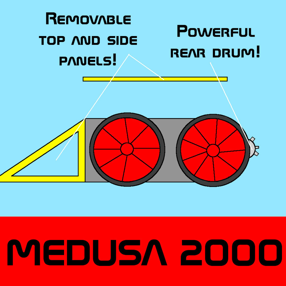 A pretty unsuccessful robot as its only victory was against King B, which wasn't all that successful in itself. The drum is only visible here so it could be highlighted as a feature.