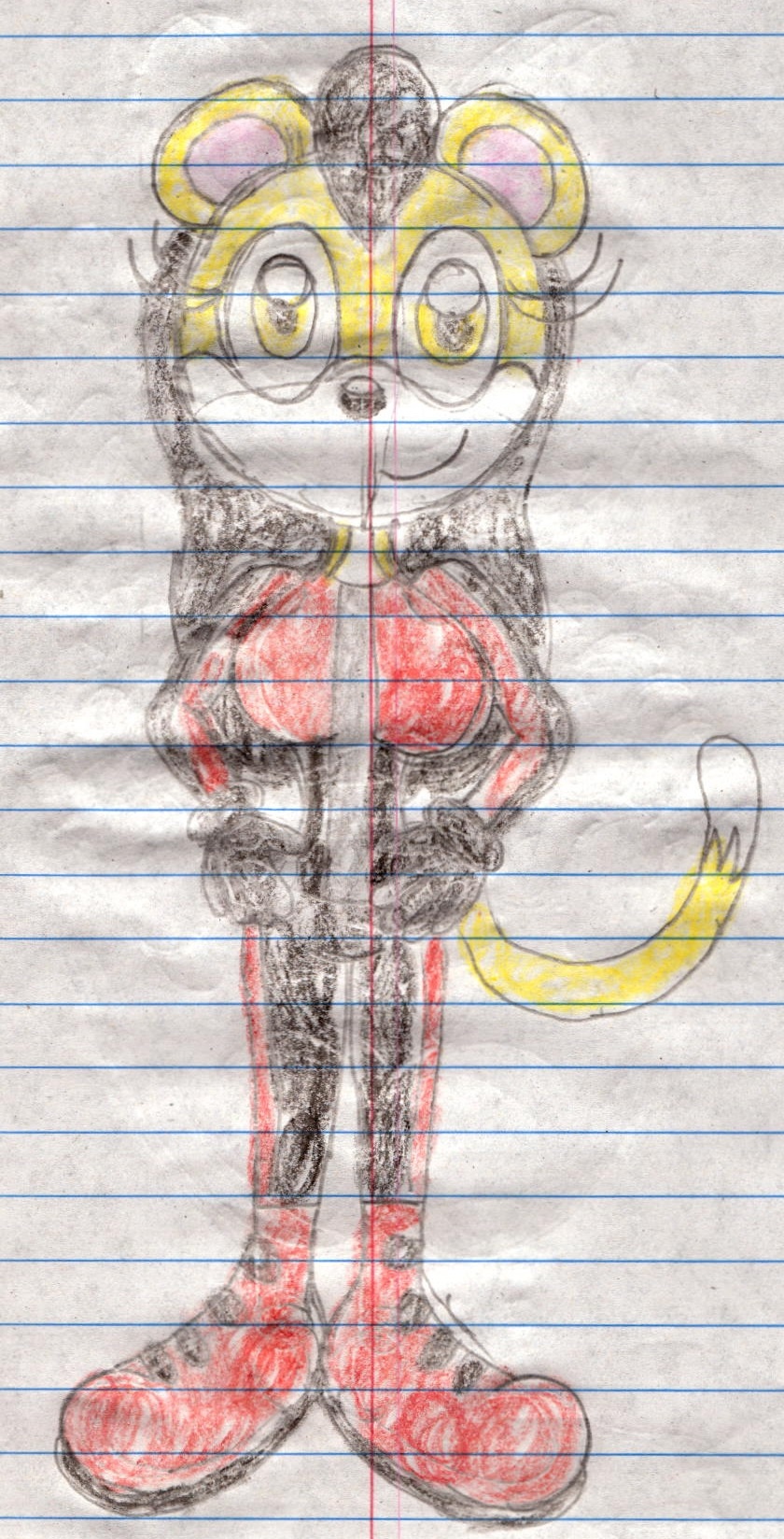 It's Kathy the Cheetah wearing a racing uniform as a way of celebrating the upcoming release of Team Sonic Racing. It's a two-tone red and black jacket, black gloves, black pants with red stripes, and red boots with black laces and soles.