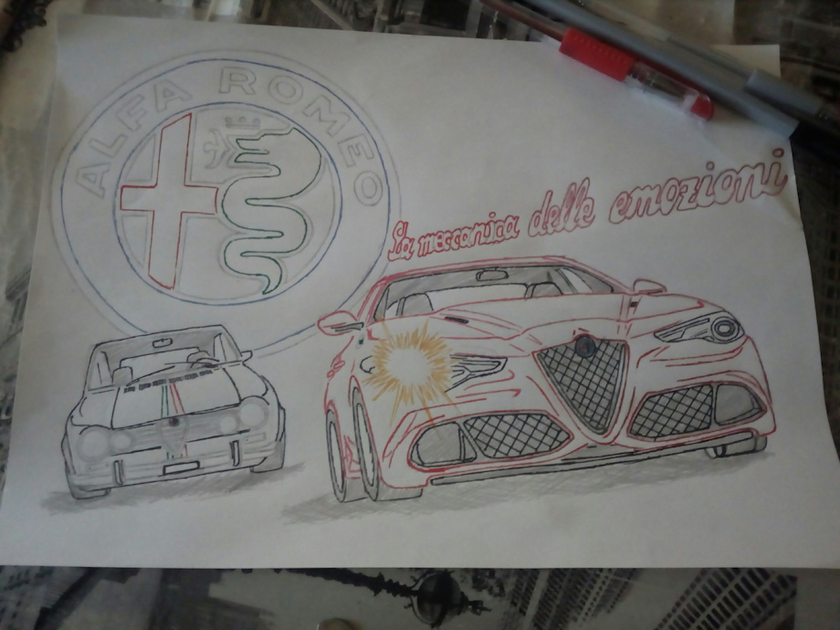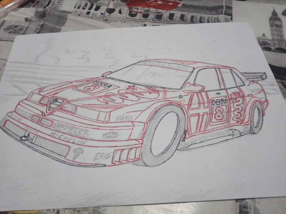 Just some progress pics about three drawings I've in completion. Two of them are Alfa Romeo themed and one about a famous movie car. I hope to finish them tomorrow...stay tuned! ;)