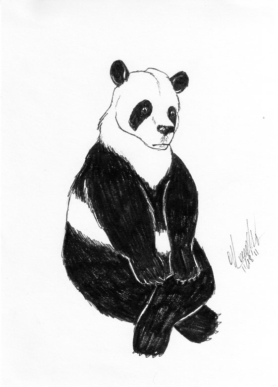 Little quick drawing for a coworker. He's sad because I told him no more bamboo until he propagates his species, though it also looks like he is wondering if my signature is edible