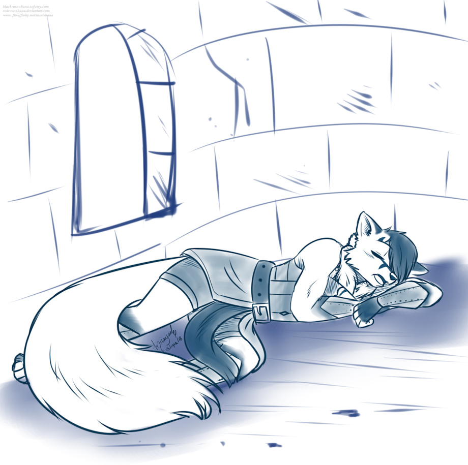 Aw WereFox, you shouldn't work that much... Let's wish his little nap won't transform into a regretful mistake.