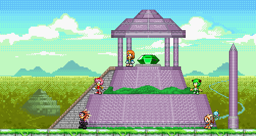 According to this pic; Sonic, Tails and Knuckles (Team Sonic) went on a mission to fight against Dr. Eggman. Amy, Cosmo and Tikal (Team Girlfriend) stayed taking care of the Master Emerald; Soon Shade, Cream and Cheese arrived and decided to help them to take care of the emerald.