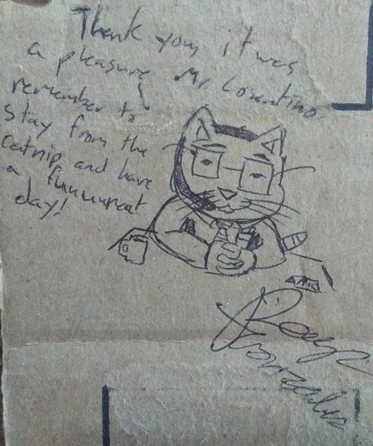 my friend and coworker Raymond sometimes draws me pictures while we're at work, he's a swell guy :3