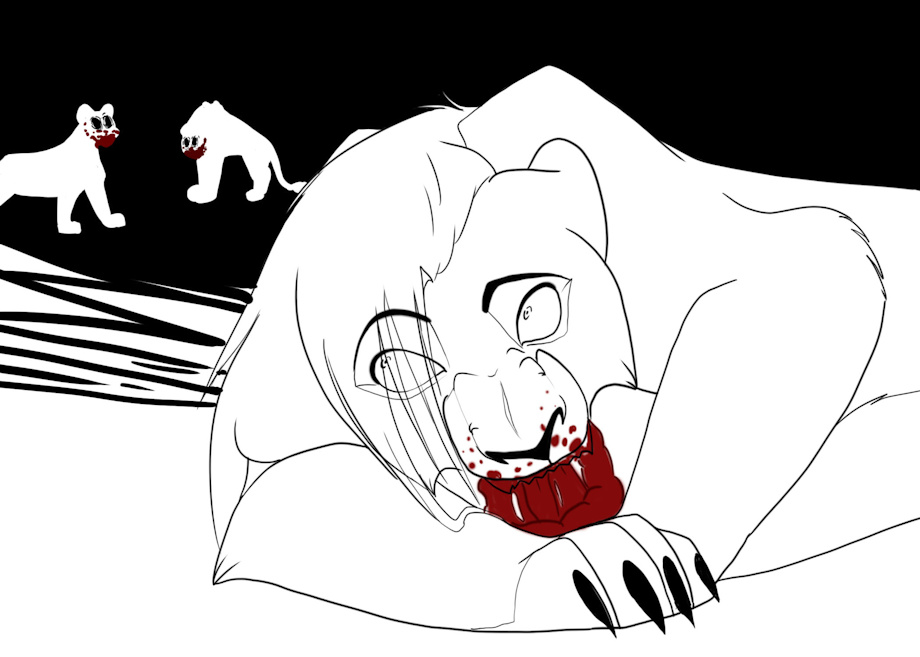 Sometimes, I might colour the "gory" area, other times not. After all, drawing's all about fun, isn't it?B) As long as yer having fun, colour or don't colour whatever the fuck you want!