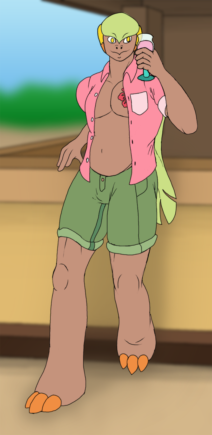Meet Paulo Alo, a Meganium/Tropius smoothie shop owner!