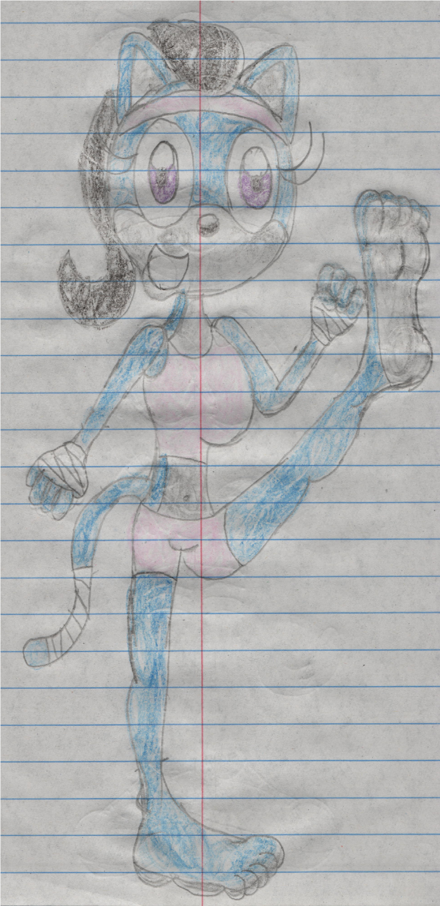 In honor of Breast Cancer Awareness month, I decided to draw Nancy the Panther wearing a pink headband, tank top, and shorts as she trains in martial arts. She's making use of her feet to dish out a healthy dose of pain to breast cancer.