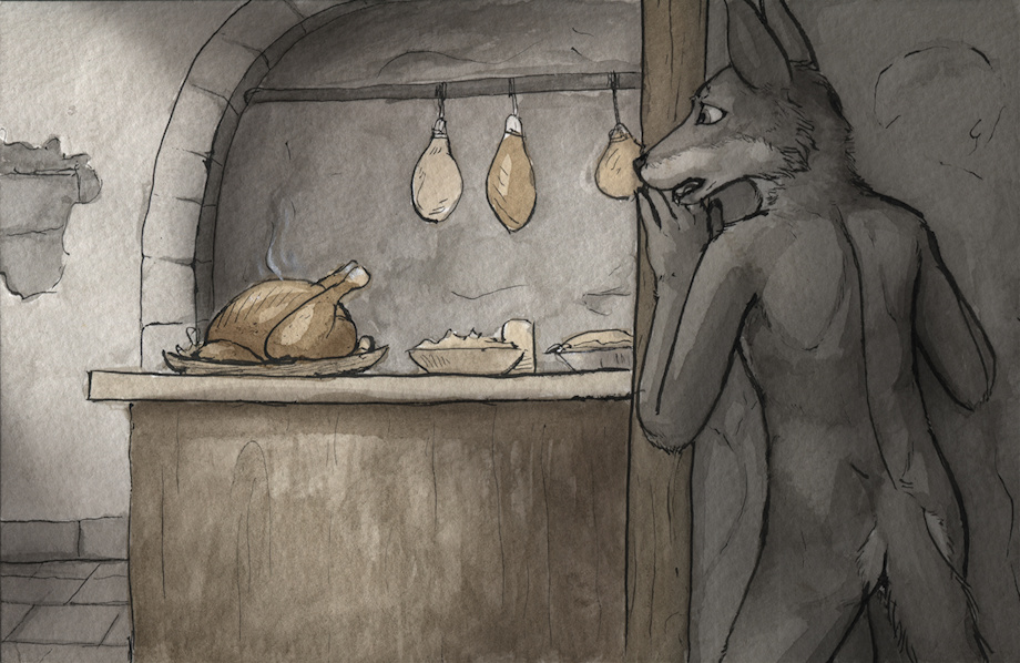 A hungry thief who has trouble ignoring his stomach. India and walnut ink, some extra shading in PS.
