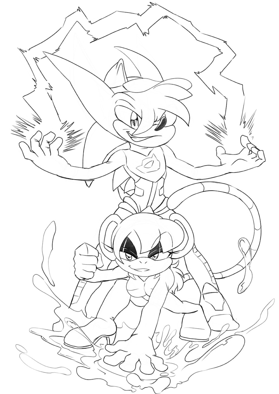 Sketch Stream Commission for Stykehog of his and a friends OC's, in battle stance
