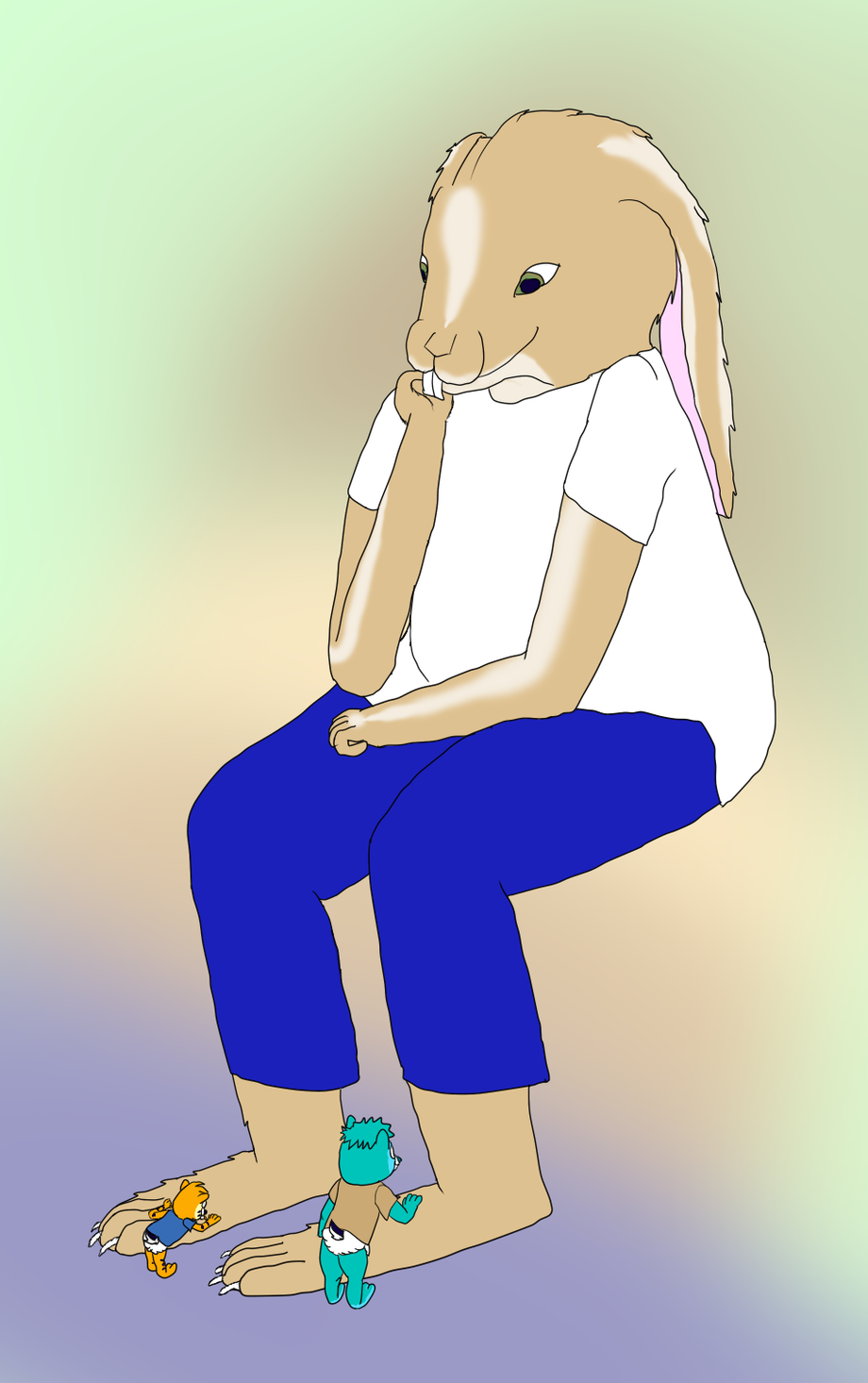 Otherwise...me looking down amusedly while a couple of lil chipmunks hug my hindpaws, apparently thick bunny fur makes for a nice huggable soft hindpaw to hug. Hey i don't mind its fun to spend time with lil ones.