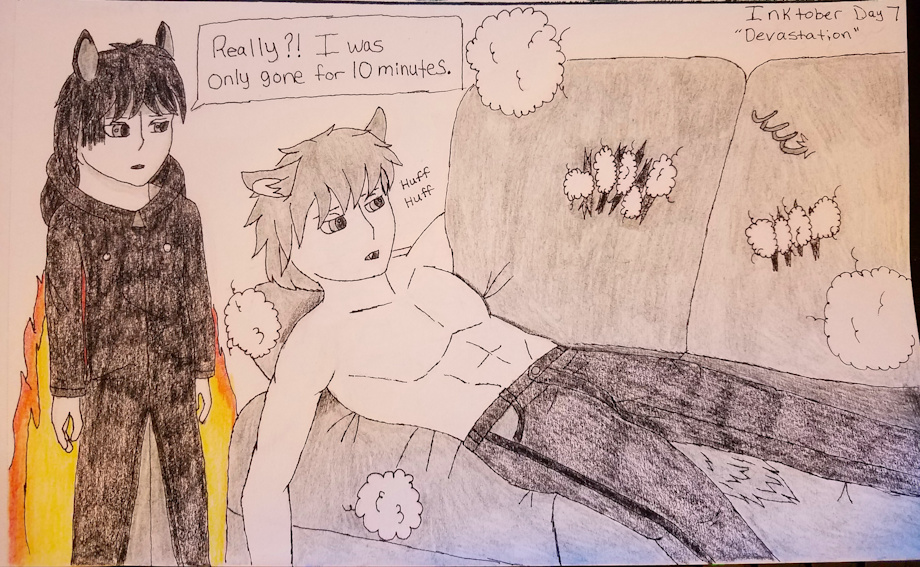 Day 6 of Inktober 2018 bears the theme "drool." Merlyn may not have a phD, but he's more than happy to help Roku with his dental problems.
