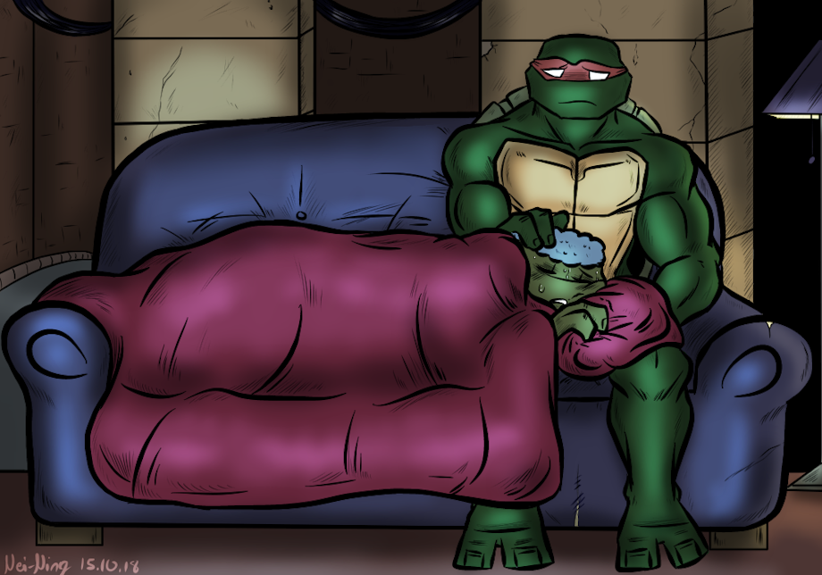 Leonardo has got bad fever so he spends most of his day, and night, on the couch sleeping under the watchful eyes of his brothers. Tonight is Raphael’s turn to watch after Leonardo, just in case if his fever goes even higher.