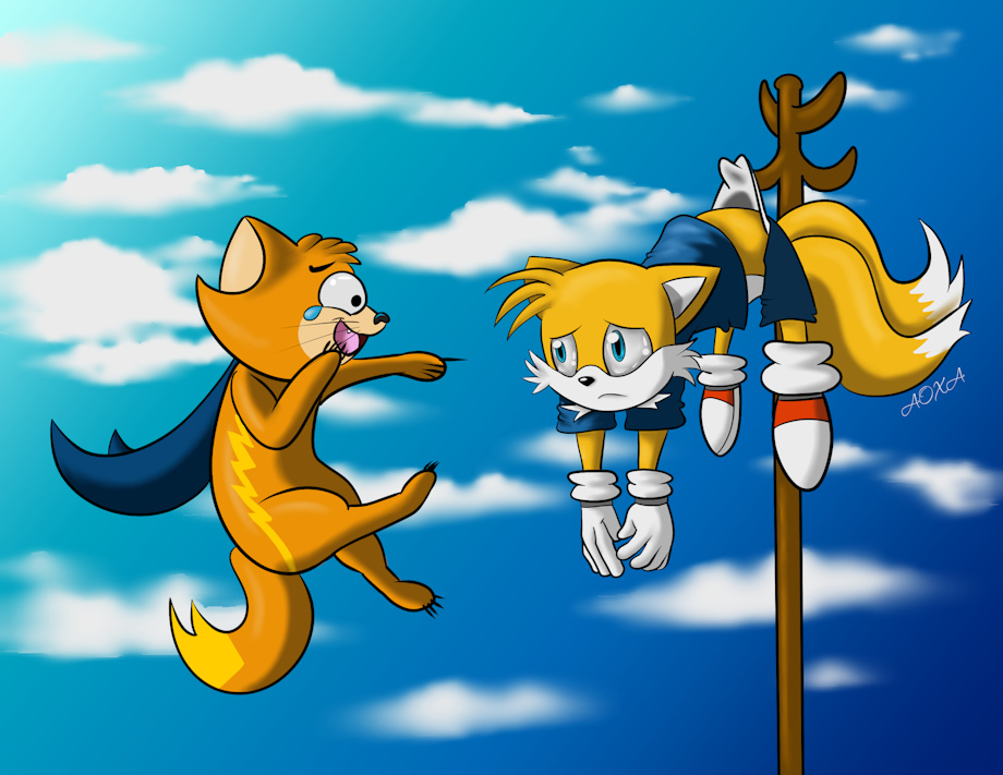 Miles Prower wedgied by Streaky The Supercat!! Am wondering if he will get him down or not? Nor does Streaky have to put him down.