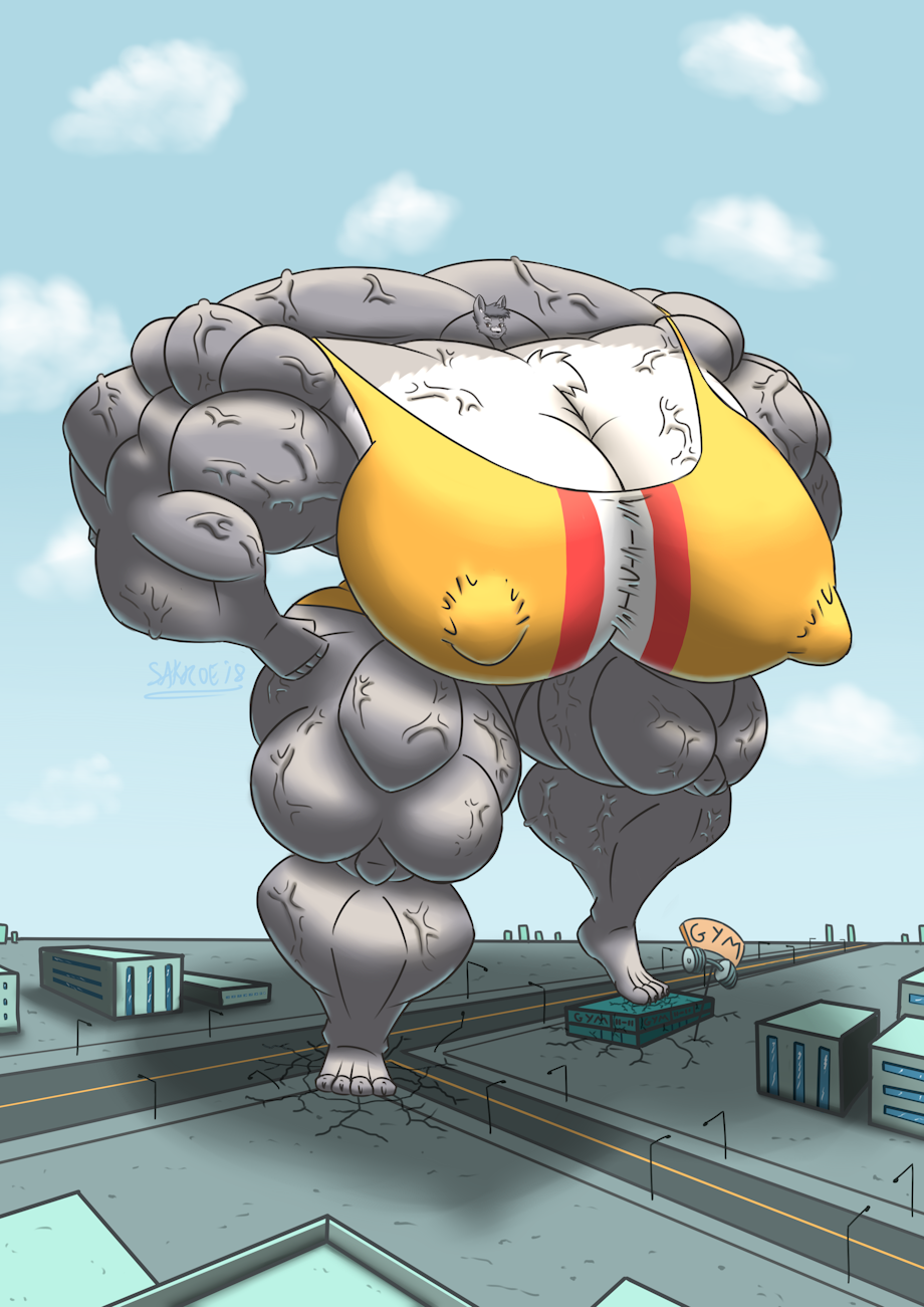 Miki could destroy the gym under one crushing foot, but she's just teaching the owner a lesson for "accidentally groping her breasts".