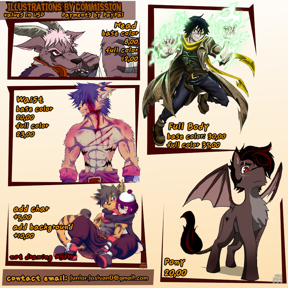 Hello everyone, everything good? I would like to inform everyone that I am doing illustrations by commission, anyone who has an interest just to contact me, to see more of my work is just go to the links of social networks that I leave in the comments, thanks for the attention :3